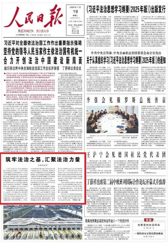 11月17日至18日,中央全面依法治国工作会议在北京召开。习近平总书记作出重要指示,充分肯定党的十八大以来法治中国建设取得的重大成就,对新征程上推进全面依法治国作出重要部署,强调“坚持党的领导、人民当家作主、依法治国有机统一”,要求“聚焦建设更加完善的中国特色社会主义法治体系、建设更高水平的社会主义法治国家”“全面推进科学立法、严格执法、公正司法、全民守法,全面推进国家各方面工作法治化”。